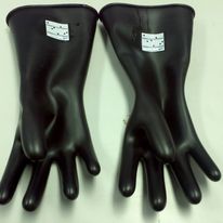 Teste de isolamento de luvas de borracha.